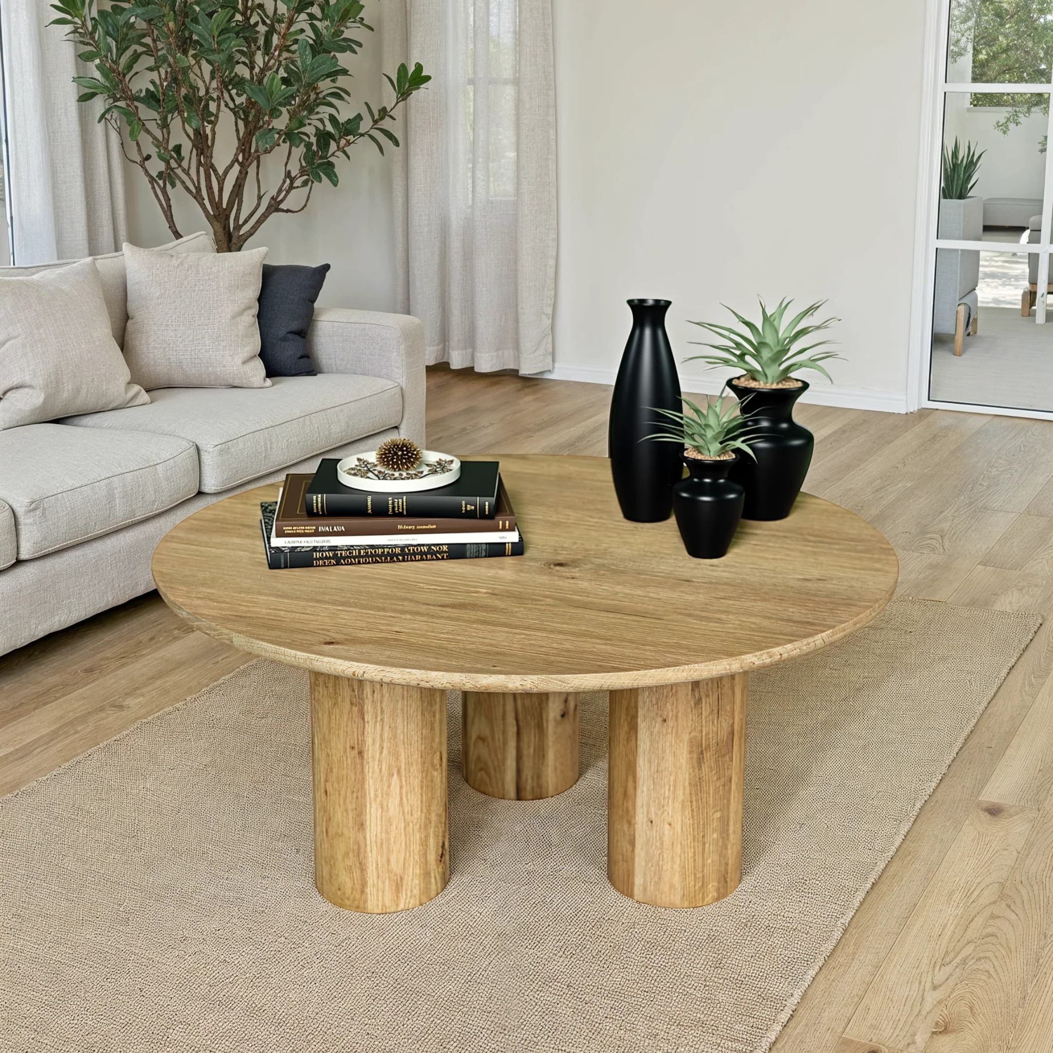 Crafted from solid oak for lasting durability, this coffee table in warm brown adds a sense of natural balance to your living space. The neutral finish showcases the wood’s organic grain and texture, bringing warmth and depth to any room. Its thick, rounded legs provide sturdy support while lending a timeless, grounded presence to your decor.