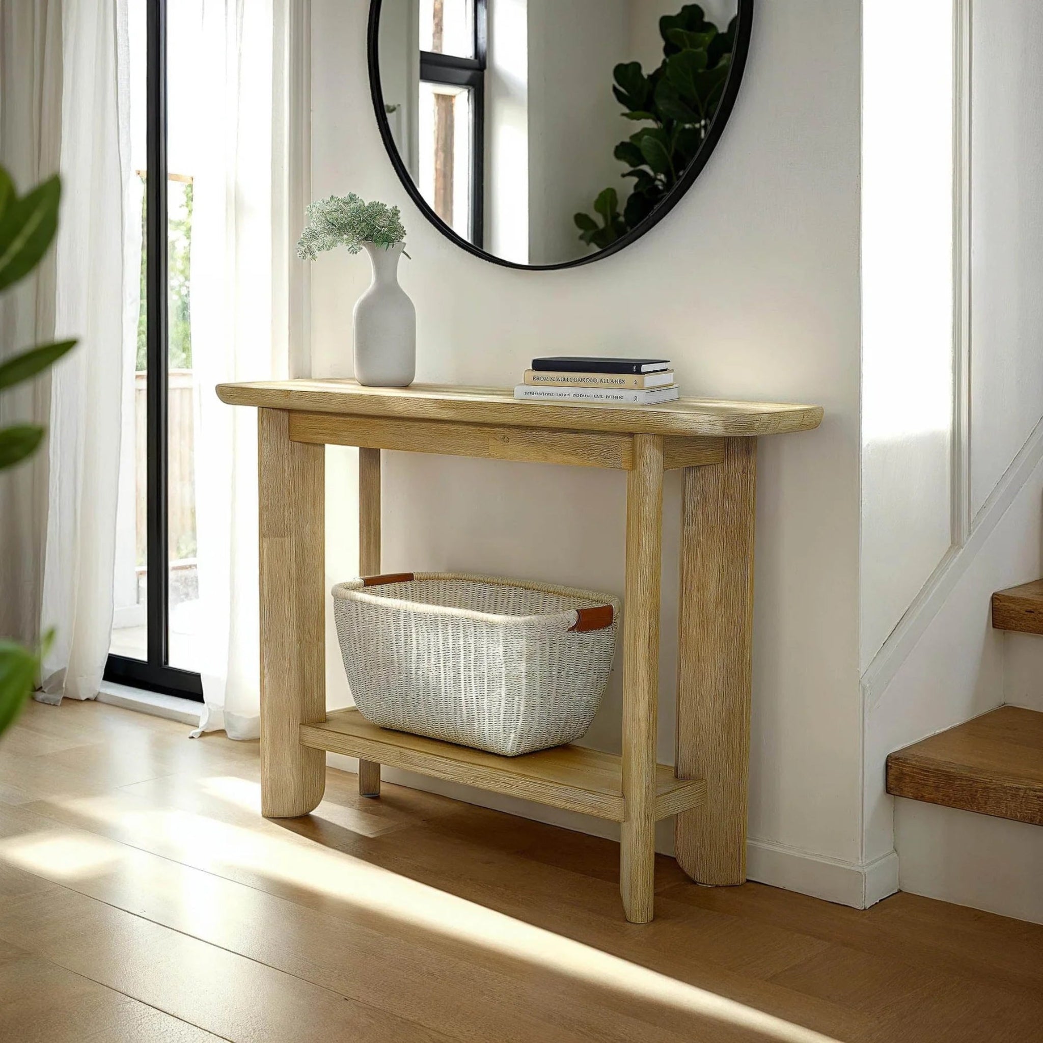 Meet the Mariela Console Table. Crafted from solid acacia wood in a brushed finish, its elongated profile works effortlessly in entryways, hallways, or behind a sofa. The integrated lower shelf provides extra room for storage or styling, making it as practical as it is visually balanced.