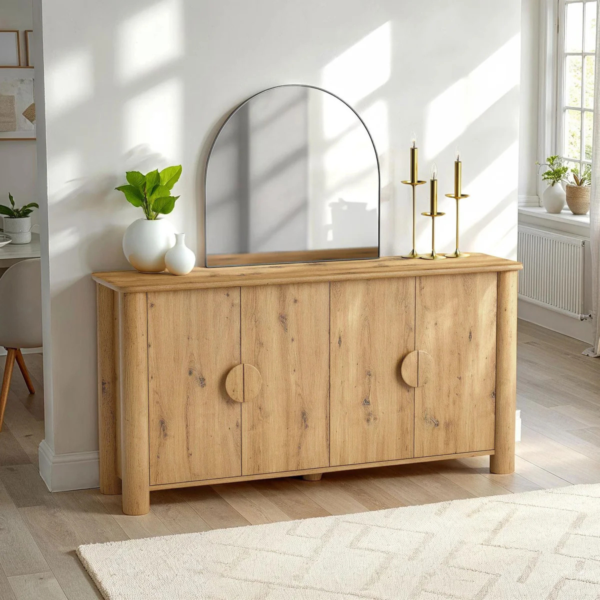 The Runa Large Sideboard showcases smooth curves and a distinctive cracked oak grain that adds natural texture and depth. Designed with four concealed doors, it offers generous interior storage while maintaining a clean, balanced silhouette, perfect for bringing warmth and refined utility to modern living spaces.