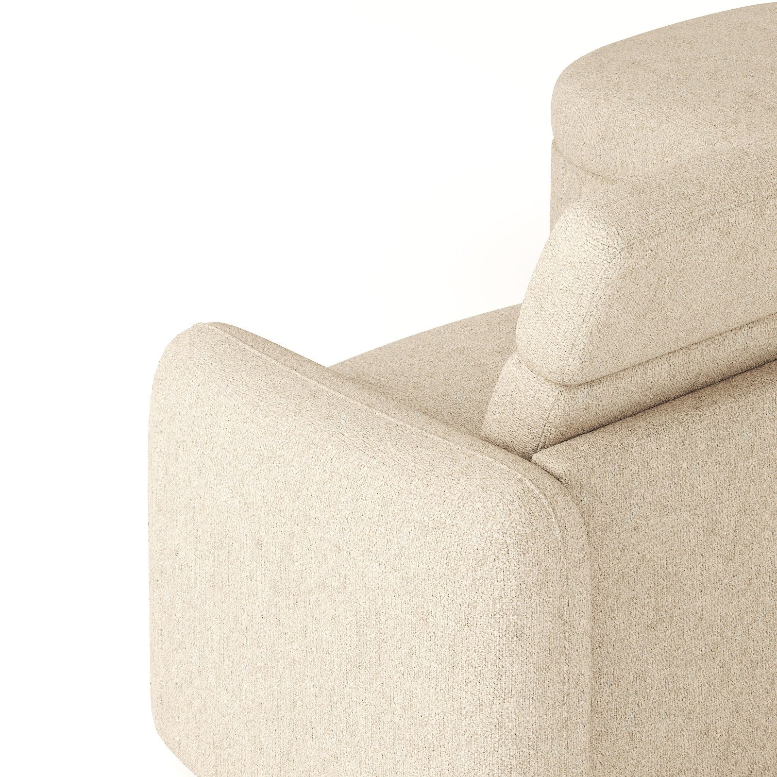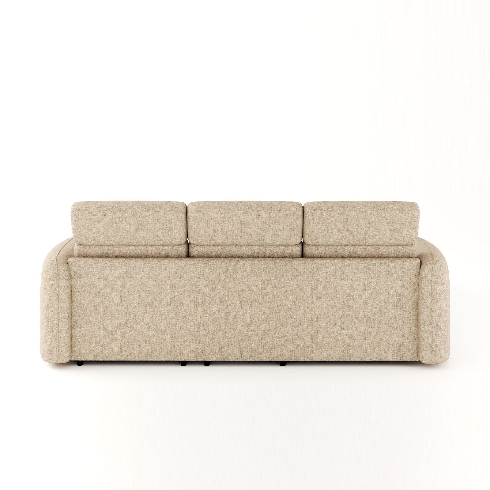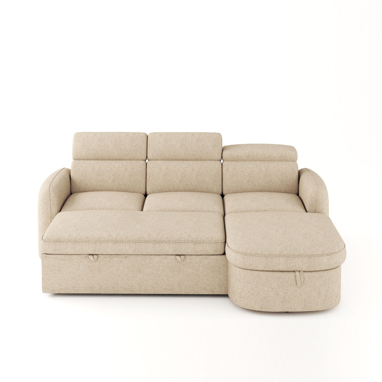 With a simple pull-out mechanism, Araam easily converts into a sofa bed, giving you an instant sleeping solution for guests. The chaise section lifts to reveal a hidden storage compartment, perfect for tucking away blankets, pillows, or other essentials. Generous cushioning and adjustable headrests provide extra comfort whether you are lounging, hosting, or sleeping.