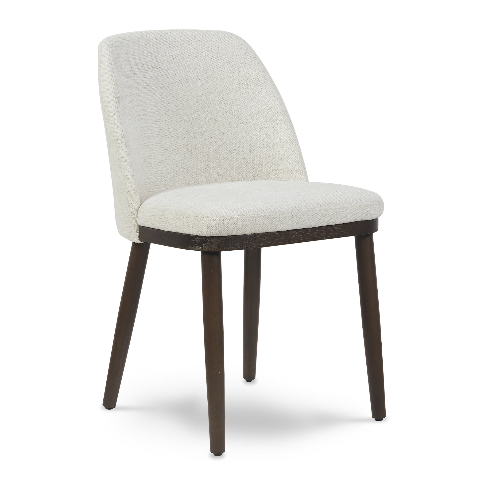 Its clean frame is balanced with subtle design details, including tapered back legs that add a light, refined touch. Upholstered in Early Grey or Cashmere Cream, each finish offers an easy-to-style, versatile look that pairs beautifully with a wide range of tables and interiors.