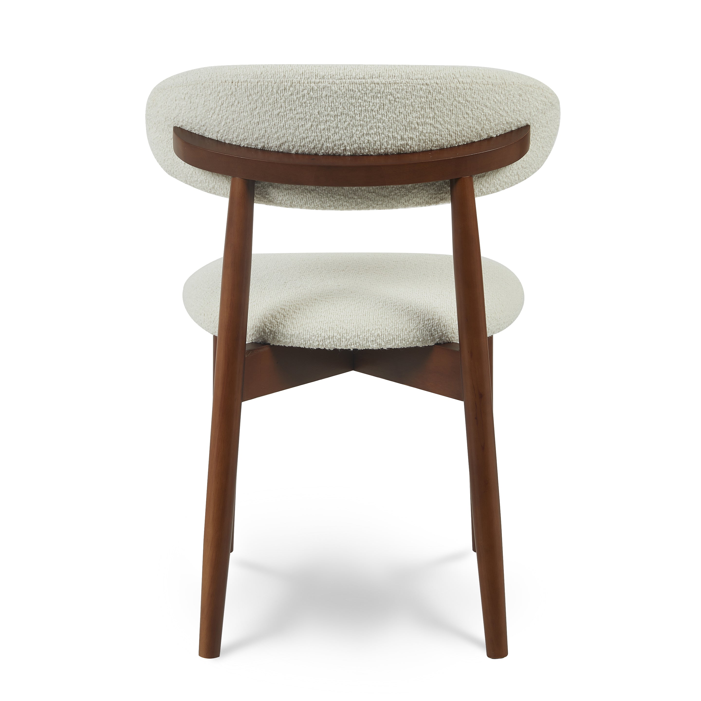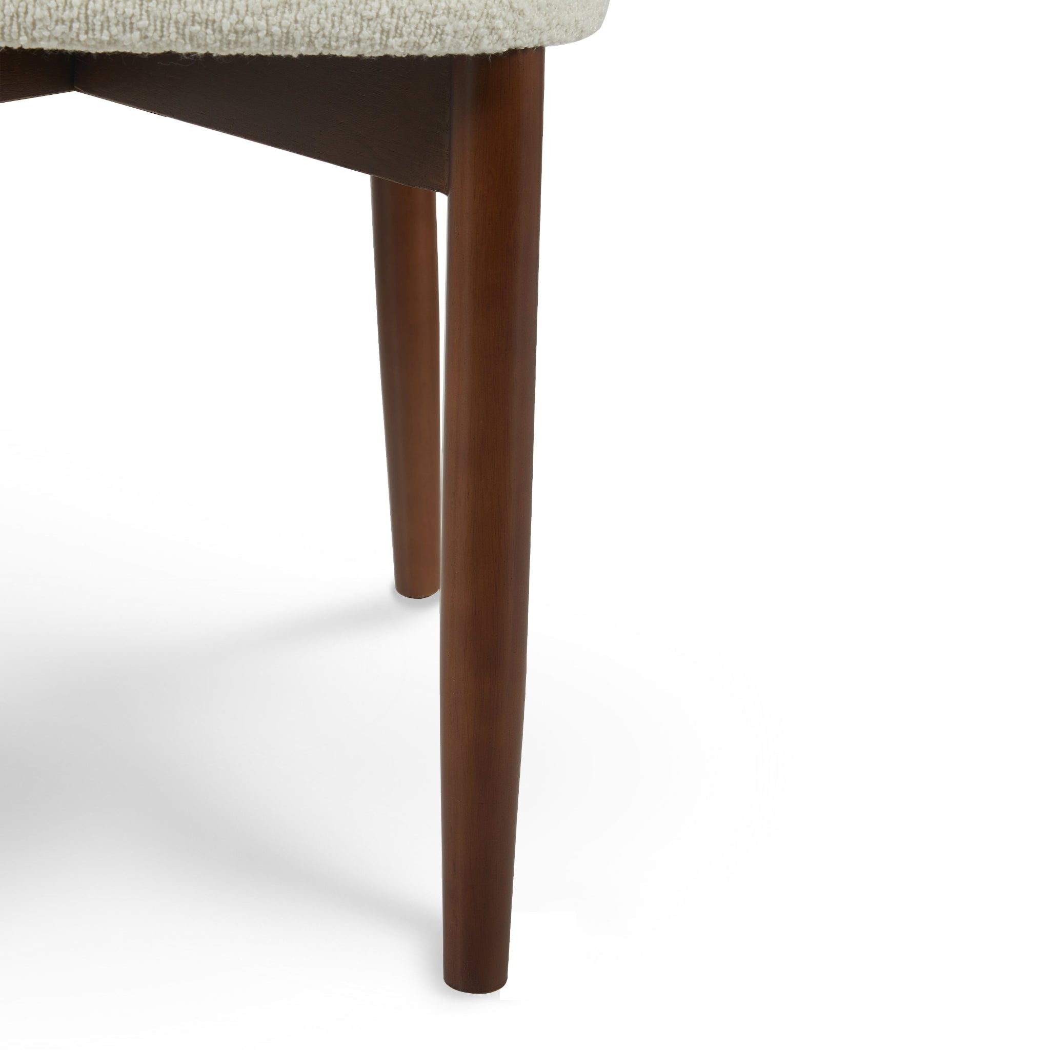 Upholstered in your choice of Almond Cream, Mocha, or Moonlight Bouclé, each finish adds depth and texture while complementing a wide range of tables and interiors. The performance fabric is 100% polyester with a 40,000-rub count for everyday durability, so lingering a little longer at the table is always on the menu. TSCA Title VI compliant and Formaldehyde Compliant for added peace of mind.