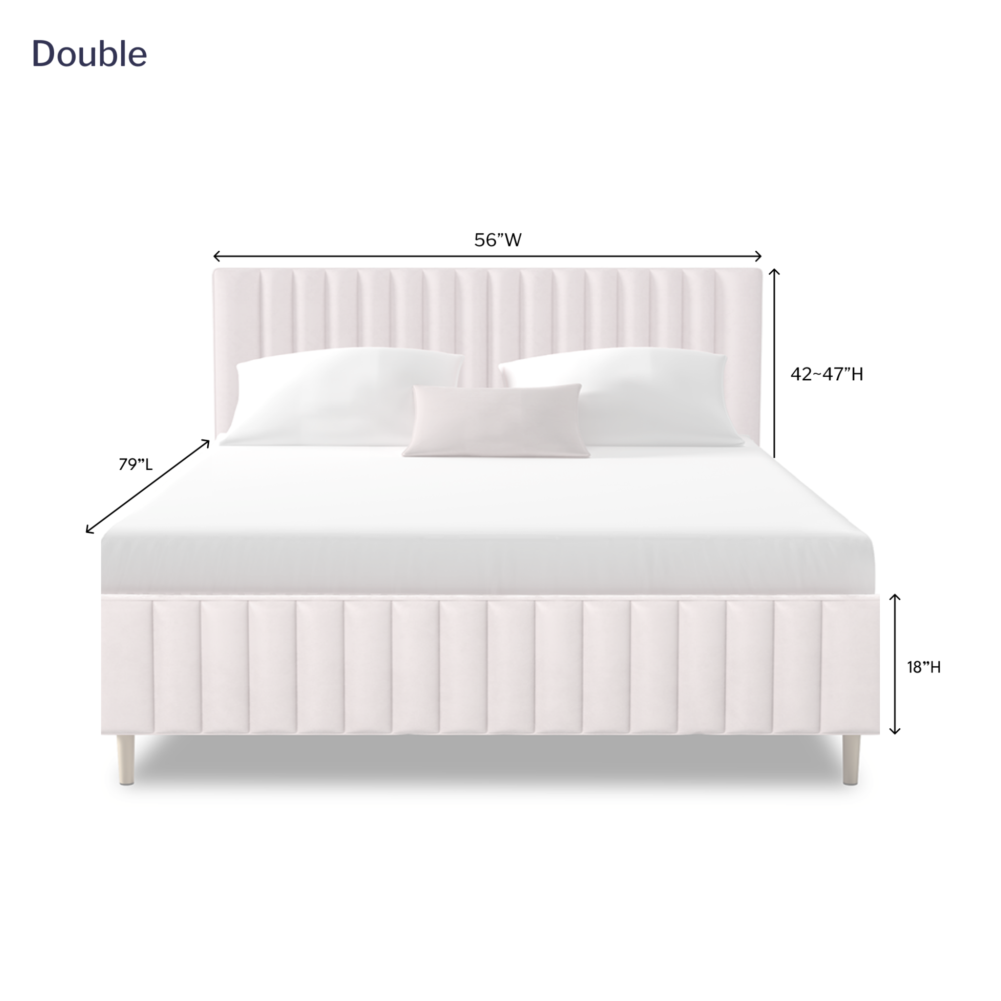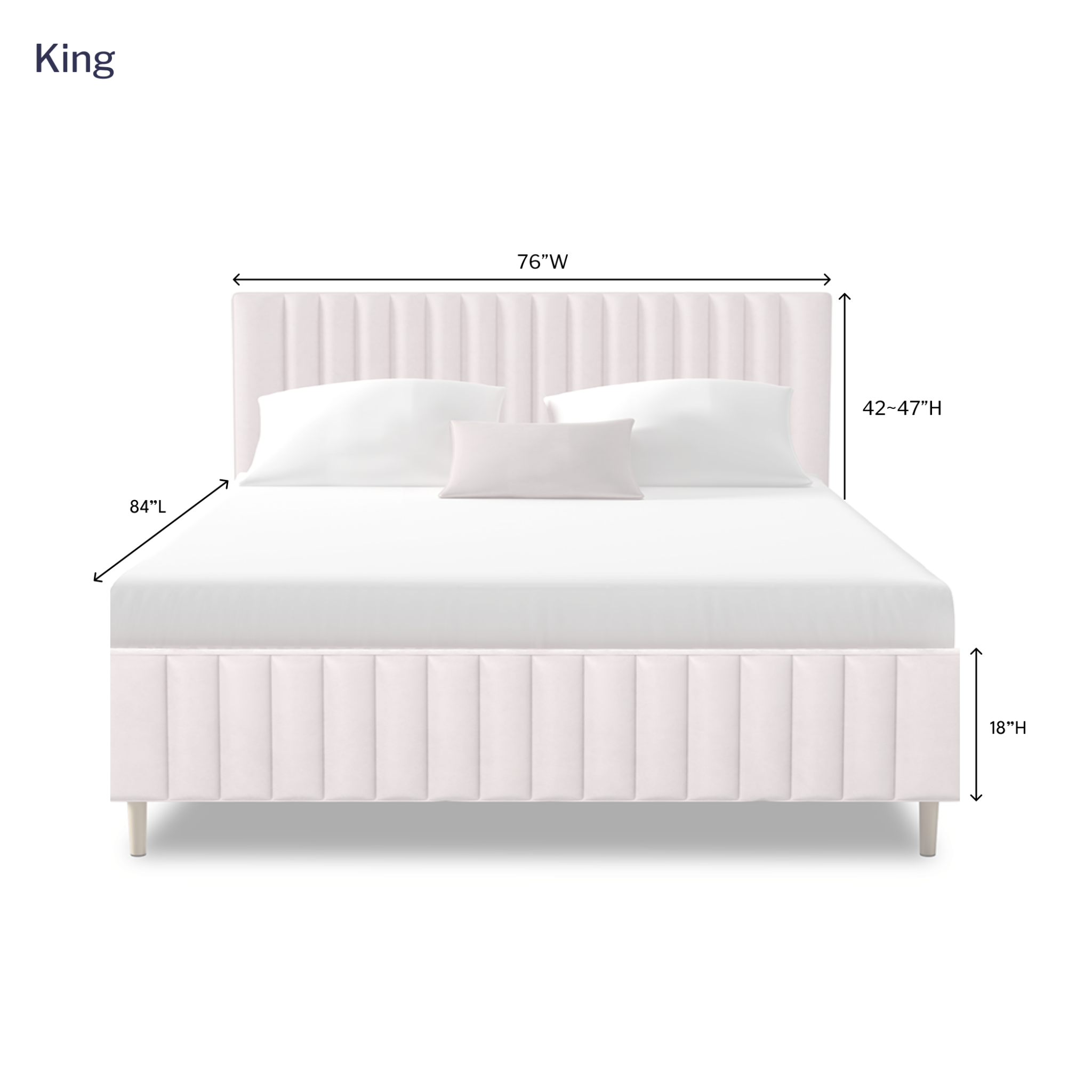 Upgrade your sleep space with Ava. Upholstered in velvet with deep vertical channel tufting, this bed adds an elegant touch while providing everyday comfort. The sturdy platform base ensures excellent support, eliminating the need for a box spring and making it as practical as it is beautiful.